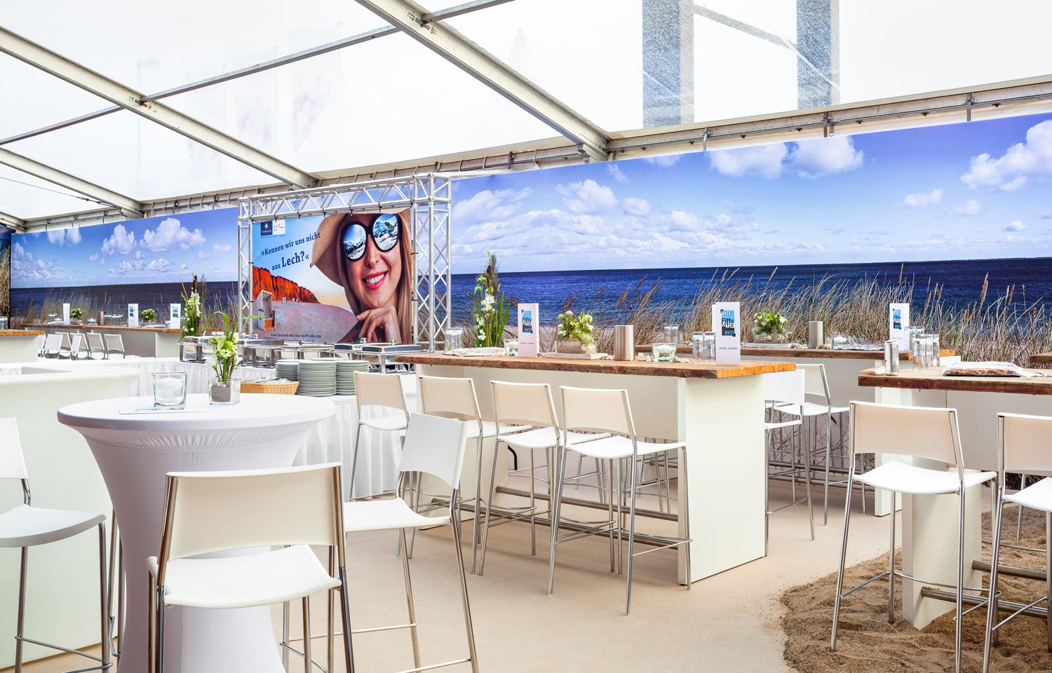 Mit unserem Full-Service setzen Sie Ihr Hospitality-Zelt eindrucksvoll in Szene, denn wir erschaffen für jeden Gast ein angenehmes Ambiente zum Wohlfühlen. Wir entwickeln individuelle Konzepte, visualisieren Ihre Zelte, beraten und begleiten Sie bei Ihrem Projekt und übernehmen alle Dienstleistungen, die für ein erfolgreiches Event notwendig sind. Bei uns erhalten Sie alles aus einer Hand: die Beleuchtung, das Mobiliar und die Ausstattung, Sanitäranlagen, Heiz- und Klimatechnik, die Individualisierung durch das Branding der Zelte und vieles mehr.