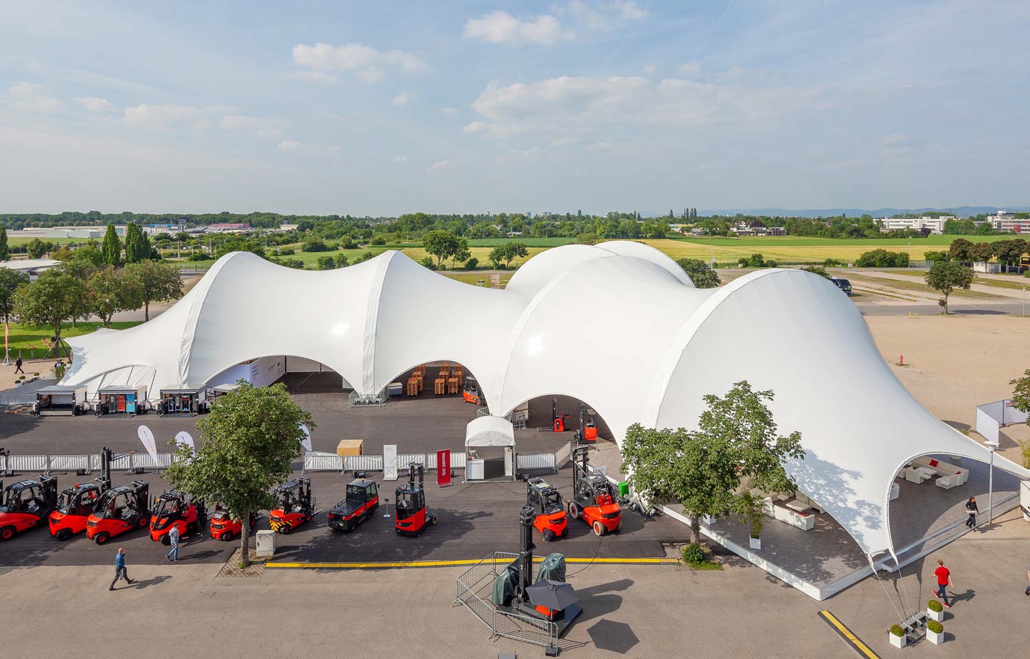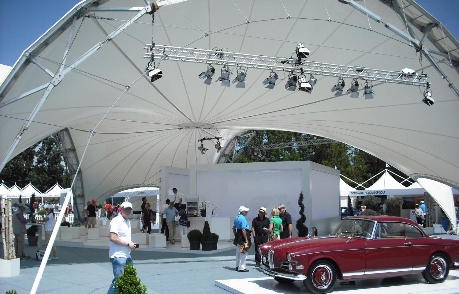 Wir übernehmen außerdem alle Leistungen wie Lichttechnik, Heiz- und Klimatechnik, sämtliche Verkleidung des Zeltes und übergeben Ihnen somit Ihr Showroom schlüsselfertig und aus einer Hand.
